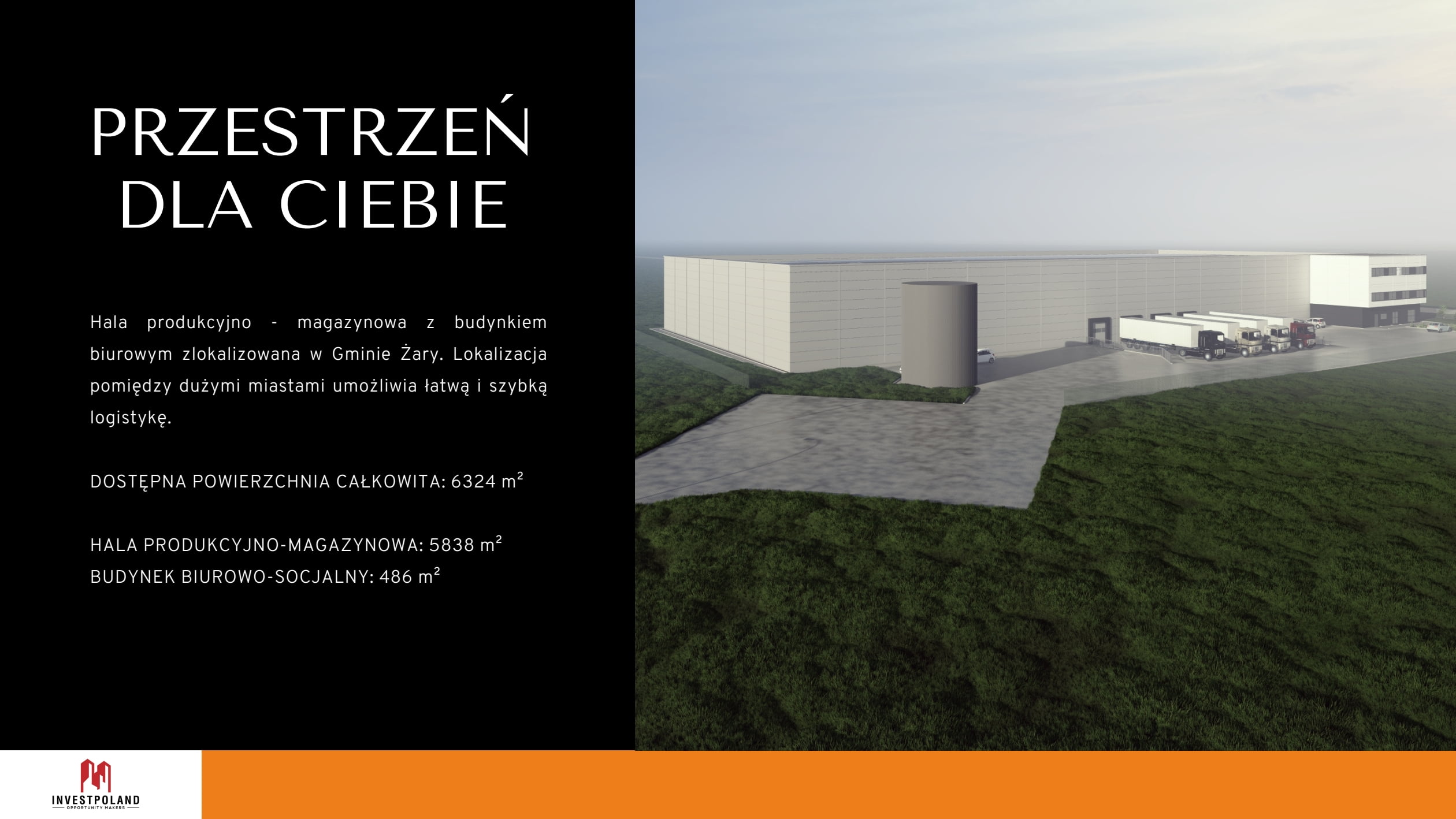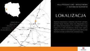 Hala produkcyjno – magazynowa z budynkiem biurowym zlokalizowana w Gminie Żary. Lokalizacja pomiędzy dużymi miastami umożliwia łatwą i szybką logistykę.